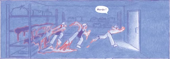 J’ai aussi été séduit par le style du dessin et le choix des couleurs, qui sont très réussis. L’autrice utilise le body horror (de façon suffisamment diluée pour m’avoir gardé à bord) pour distiller un propos social. Sans trop en révéler, derrière les fluides collants et gluants se cache un récit sur les environnements de travail délétères et sur l’épuisement (mental, physique) qu’ils engendrent, sans oublier la difficulté de mener de front des ambitions artistiques et la nécessité de gagner sa croûte. Je suis un peu frustré car j’aurais voulu en savoir davantage sur le devenir des personnages, ce qui est après tout plutôt bon signe. Même si la fin est un peu abrupte, c’est une BD qui se prête assez peu aux grandes explications et demande d’être digérée tranquillement.