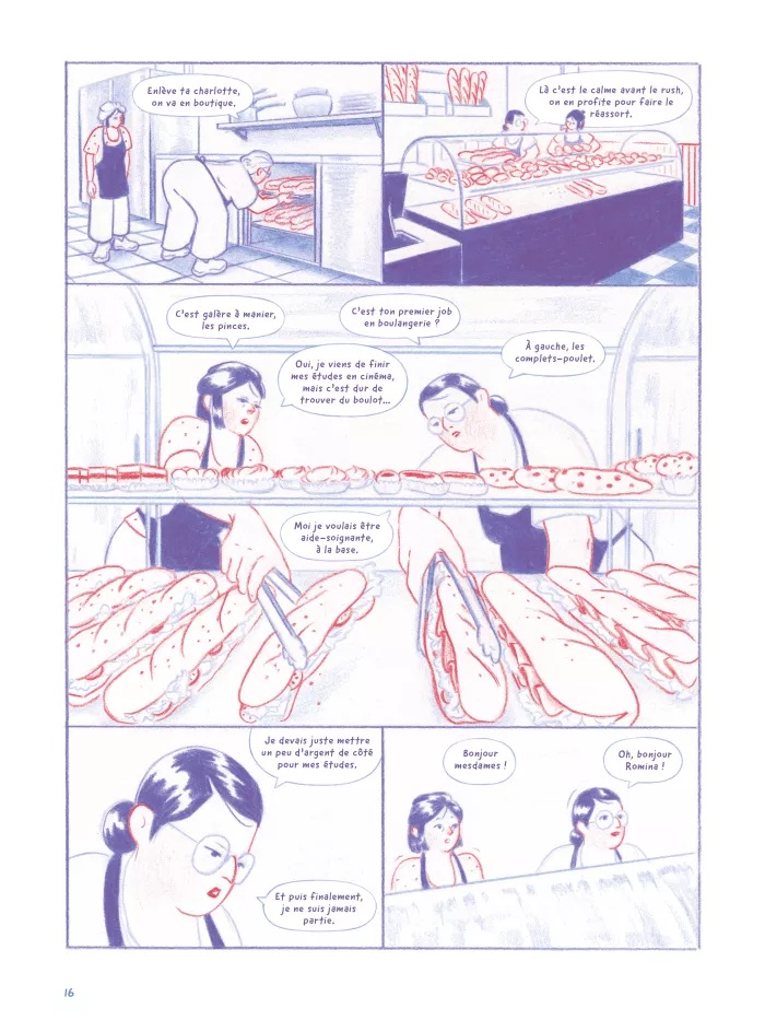 Pour gagner sa vie en attendant de décrocher une résidence d’écriture en cinéma, Charlotte débute un job alimentaire dans une boulangerie industrielle. Elle fait la connaissance de ses collègues, qui ont l’air sympathiques, de sa chef, qui se révèle rapidement avoir la gueulante facile, et de Romina, la sans-abri d’en face plutôt prompte aux prédictions délirantes. Les horaires sont difficiles, le travail épuisant et les clients parfois pénibles. Les efforts de Charlotte pour écrire un scénario patinent et, après quelques jours, elle commence à avoir d’étranges hallucinations (elle n’est d’ailleurs pas la seule). Levure, la première BD de l’autrice française Juliette Hayer, possède un potentiel de bizarrerie horrifique qui m’a tout de suite attiré.